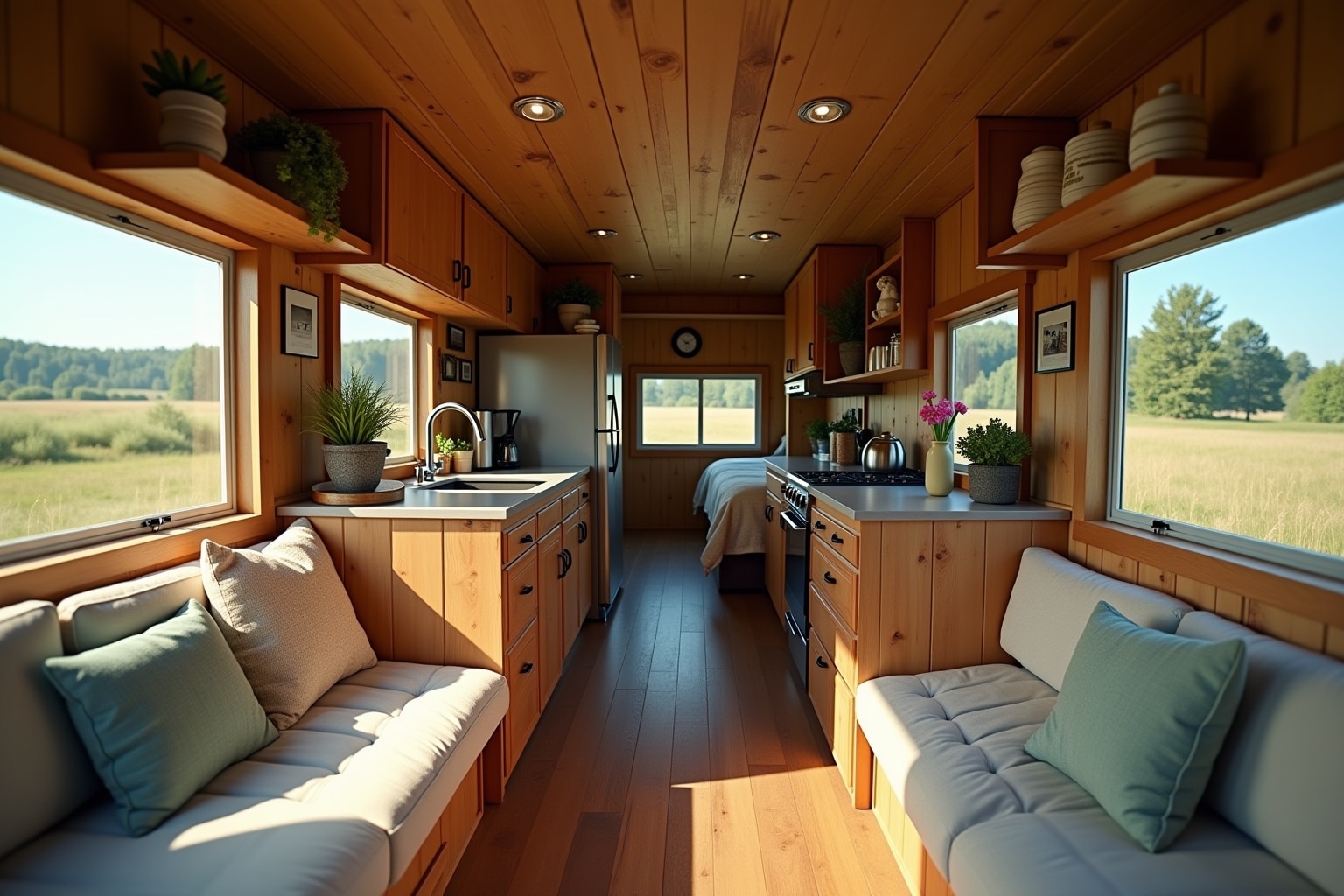 Baue den Innenausbau nach deinen Plänen. Verlege den Boden, verkleide die Wände und baue Möbel ein. Achte auf eine sorgfältige Verarbeitung und eine ansprechende Optik.